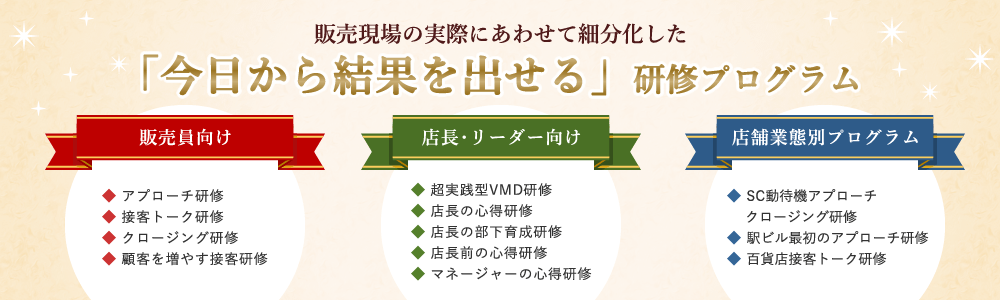 駆け出しの販売員だったころの上司が私にしてくれたように、販売員の技と心と行動を変えるきっかけを、研修という形でプレゼントしてあげてください。